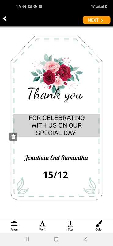 GIFT TAGS MAKER text editor tool allows you to type over default text, as well as change the font size, style, alignment, and more.