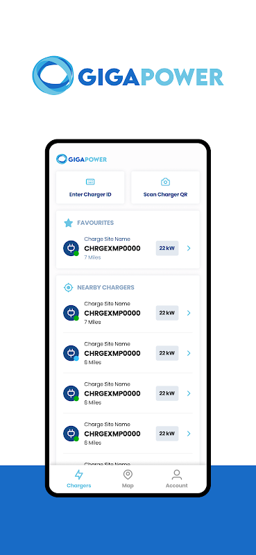 - Scan QR codes on Giga Power chargers to start