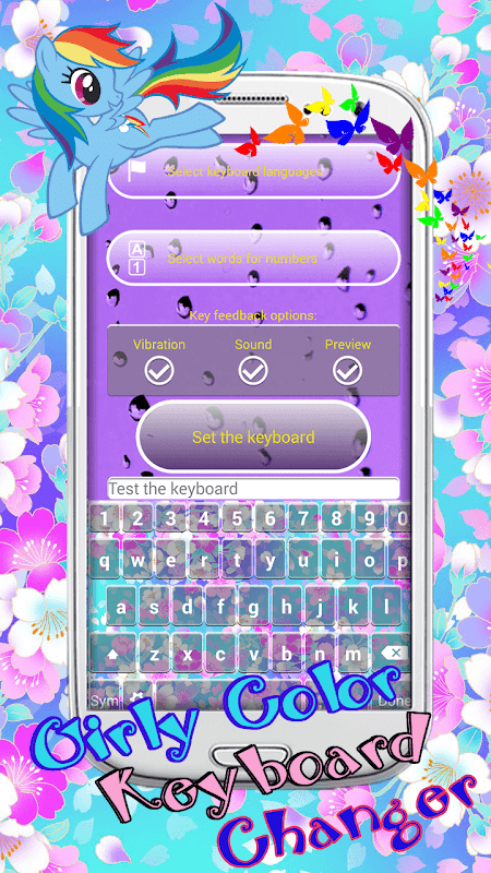 ✦✿Girly Color Keyboard Changer✿ offers you numerous beautiful themes, specially designed for girly girls. Choose the desired background theme and one of many girly wallpapers to enhance your touch keyboard. Change keyboard cover in a second and beautify it with dynamic layouts, glitter stickers and cute girls images. Make your own keyboard skin by using colorful background images and stylish designs. For more fabulous look add some special effects to your best ‘‘keyboard design’’.