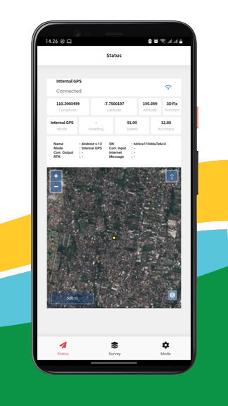 GIS Survey Mobile is intended for retrieving Geodetic GNSS Coordinate data from the Equator GNSS Product (recommendation), but if you don't have an Equator GNSS Unit, you can also use it from the Smartphone Internal GPS integration, but the accuracy is not as good as using the Equator Geodetic GNSS.