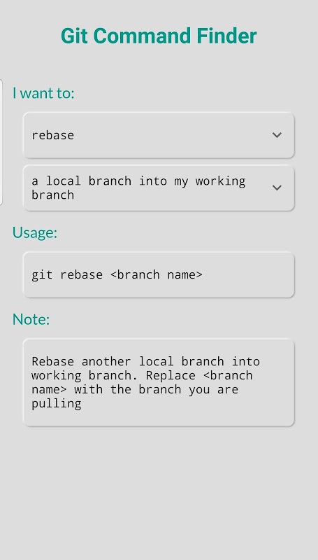 You are no longer want to search on the Internet and read through many texts to find the correct Git command. The application organizes Git commands into simple guidance that is very effective in looking up.