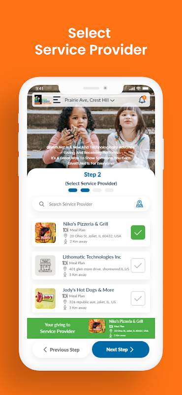 Givers can choose from diverse giving options including purchasing one-time or recurring meals, ability to send CGCs easily in-app, or by text, email, or social media, and a variety of recipient types. Recipients can be someone of your choice, a community center or ministry to distribute meals to the needy, or with our ‘First-Come-First-Served’ option so any lucky member of your community can claim a meal. All in-app meal purchases can be made easily by credit card.