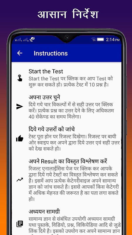 सामान्य ज्ञान क्विज टेस्ट एप में आपका स्वागत है। इस एप में हमनें भारत में आयोजित होने वाली विभिन्न प्रकार की प्रतियोगिता परीक्षाओं में सामान्य ज्ञान से संबंधित पूछे जाने वाले बहुविकल्पी (MCQ) प्रश्नों को सम्मिलित करने की कोशिश की गई है। इस में लिए गये अधिकांश प्रश्न अक्सर प्रतियोगिता परीक्षाओं में पूछे जाते है। इस एप द्वारा आप प्रतियोगी परीक्षाओं की तैयारी की जांच भी कर सकते है। आपको किस श्रेणी में अधिक सुधार करना है एवं किस श्रेणी में आप अधिक निपुण है के लिए परिणाम का विश्लेषण कर सकते है।