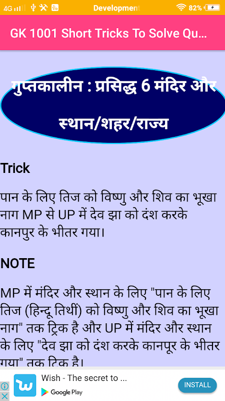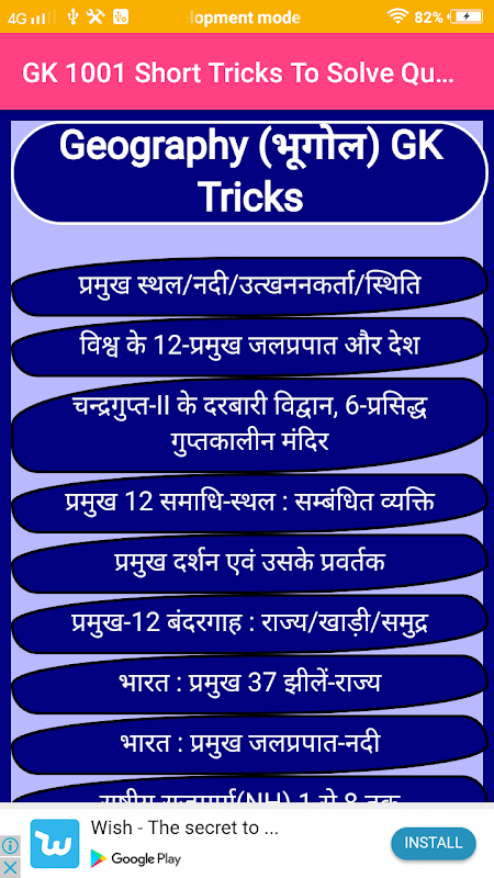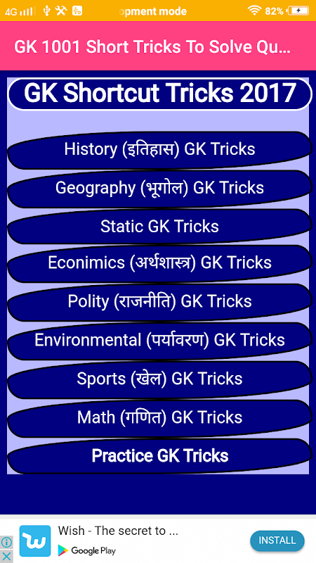 In this app you will find GK tricks category wise like history, geography, science, static gk etc.