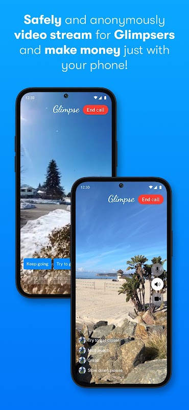 Earn anytime, anywhere! Set your own hours and get paid fast. Turn your phone camera into a money-making machine with Glimpse Provider app. If you're already out and about, Glimpse Provider allows you to share your live experiences with people around the world who are willing to pay for it. Simply accept a request from a Glimpse user, and start streaming live video on demand. You get paid by the minute for each call you facilitate, so you can make money while enjoying the things you love to do. Whether it's at a requested destination, a tourist attraction, or just out exploring, Glimpse Provider lets you share your experiences and make money doing it.