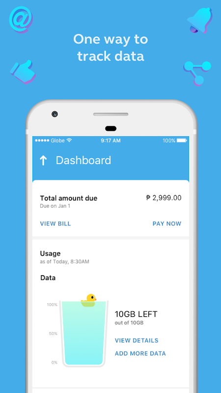 Surf, Play, Watch, Listen, and Share without worrying about your mobile data! With GlobeOne, you'll know exactly how much you're using, how much you have left, and how you can make the most of your data with the best promos.
