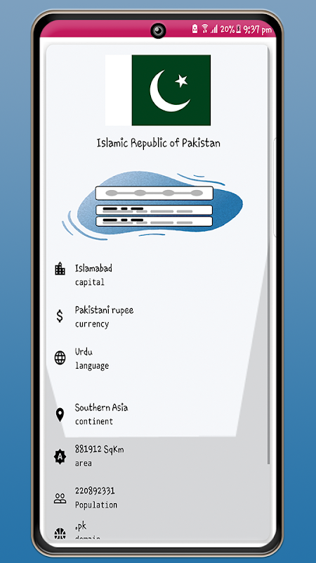 All country's info and quiz App gives significant data about the nations of the world. This App has all over the world Countries' data like Capitals, Currency, Flag, Population, Area, Language, Calling Code, Internet Domain, Continent, etc.