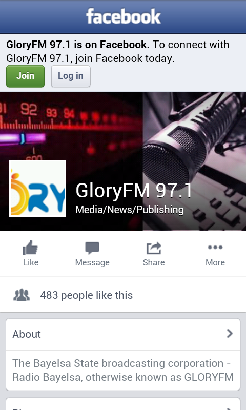Glory FM 97.1 is broadcast the Bayelsa State Capital,Yenagoa,stay tuned Glory FM