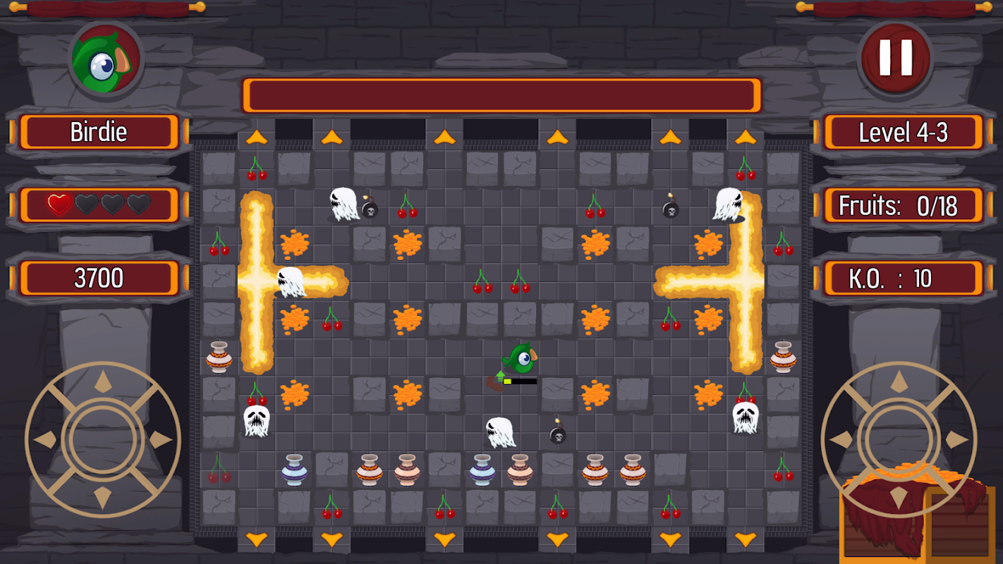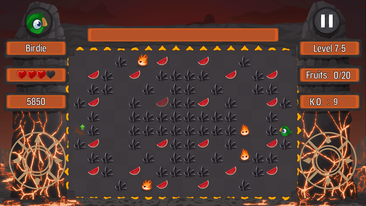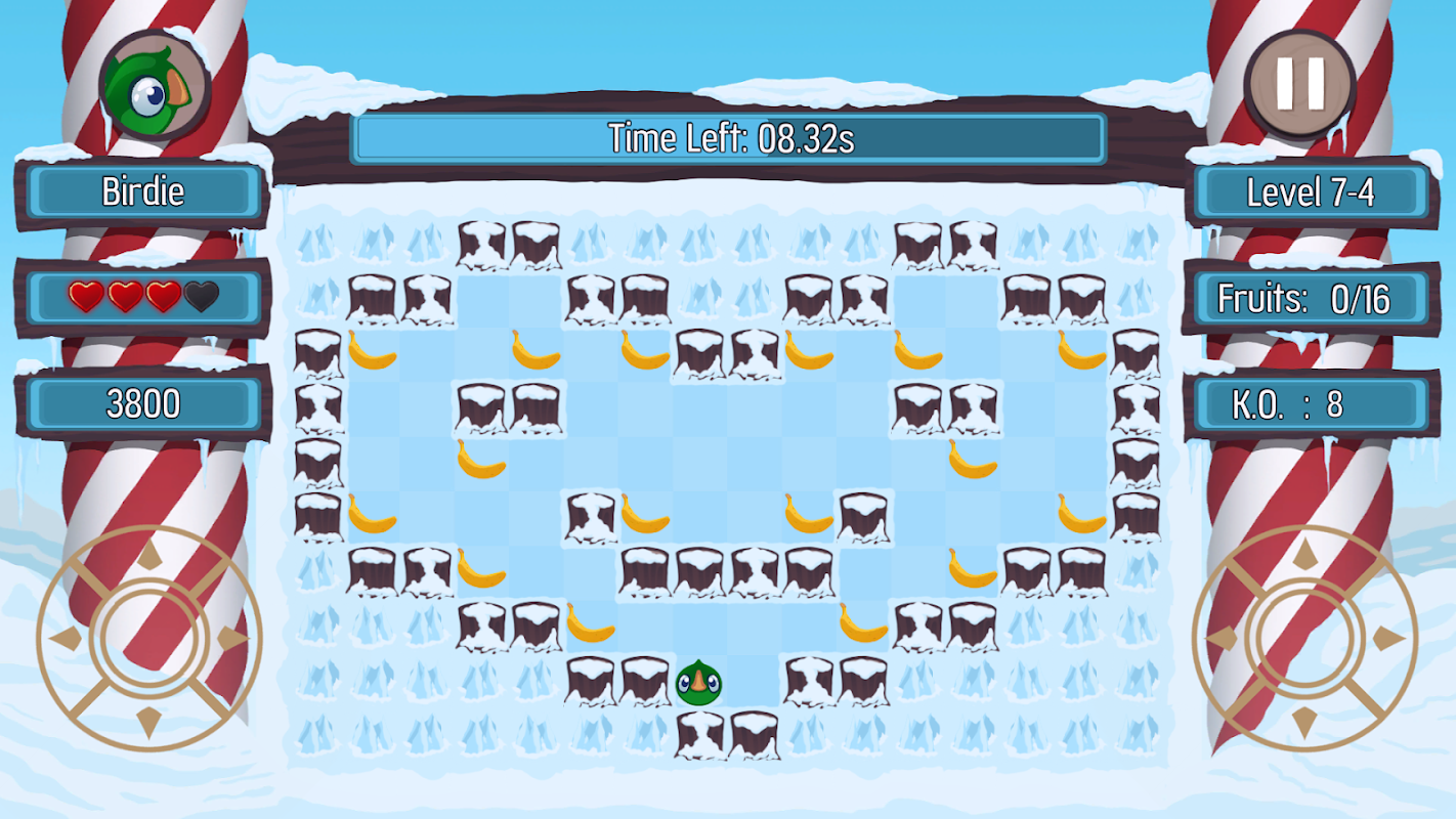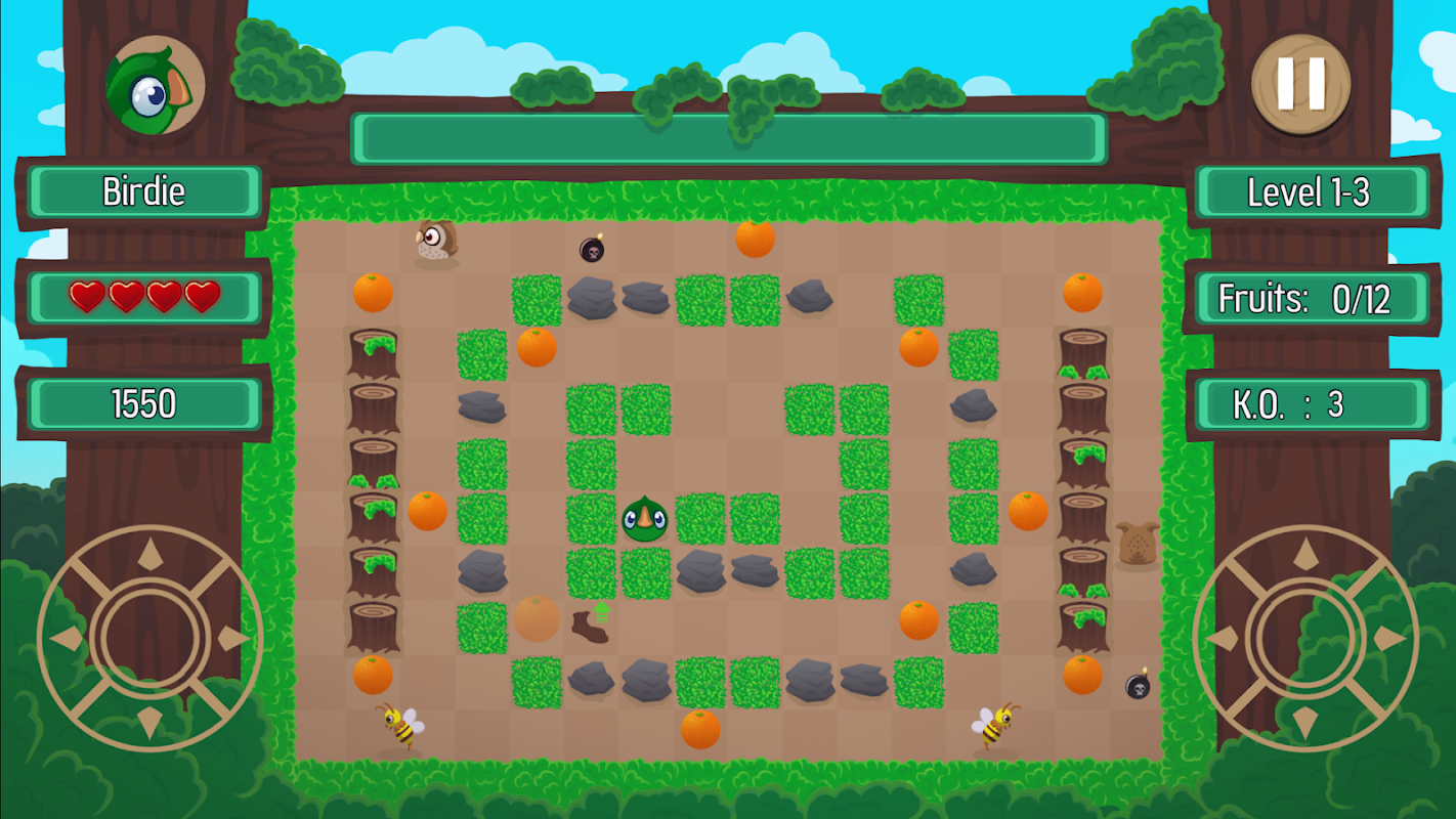 In "Go! Birdie", you have to collect all fruits present in grid-based, maze-like levels. Other animals will try to stop you, so avoid conflicts or pick up right power-ups to fight back. There are also bonus levels, where time is your only enemy. You can either maximize your score by beating whole game at once, or play it cool from chapter to chapter.