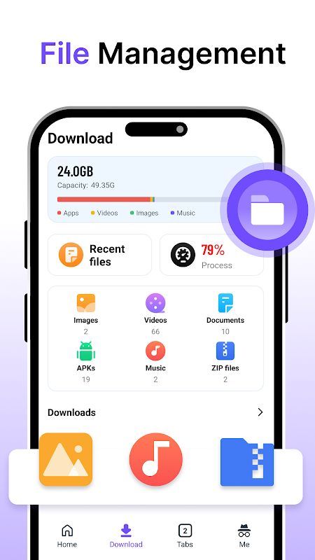 Easily browse and manage all files and folders in your phone, and efficiently organize and find what you need.