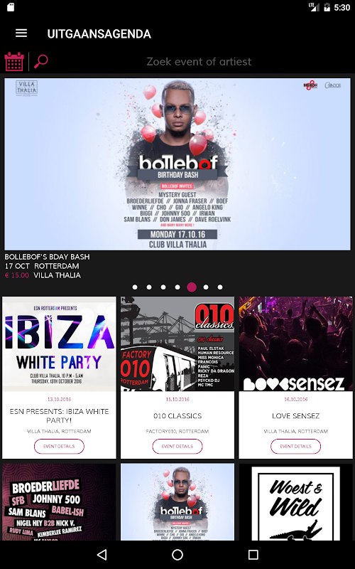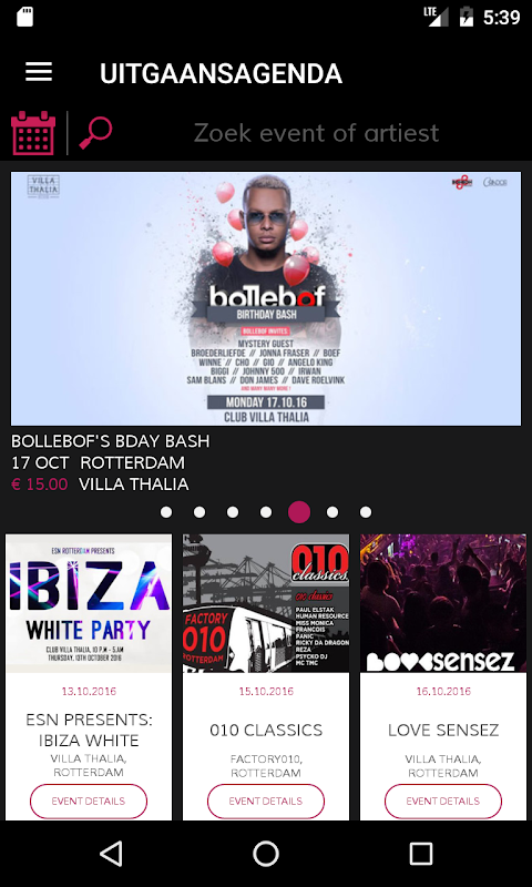 - Filter on your personal preferences: location, type of event, type of entertainment and music.