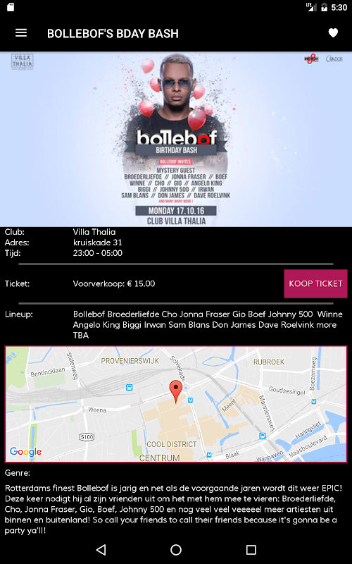 At a glance you can see which parties, concerts, bars, and clubs are nearby.