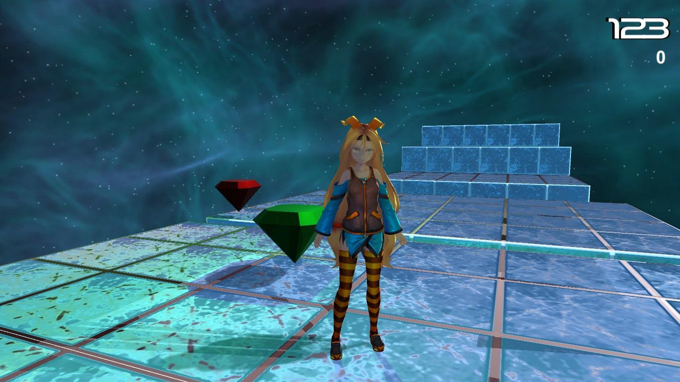 You can move "UNITY-CHAN" to collect gems (points). Players will pass various obstacles to collect these points in different regions according to their level.