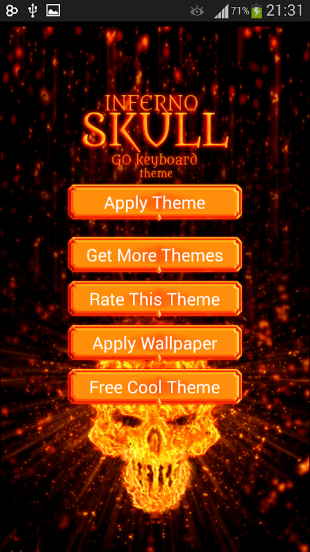 Download the theme. Press the "Open" button. Press "Apply Theme" button. Choose from he list GO Keyboard Fire Skull Theme and press to apply it.