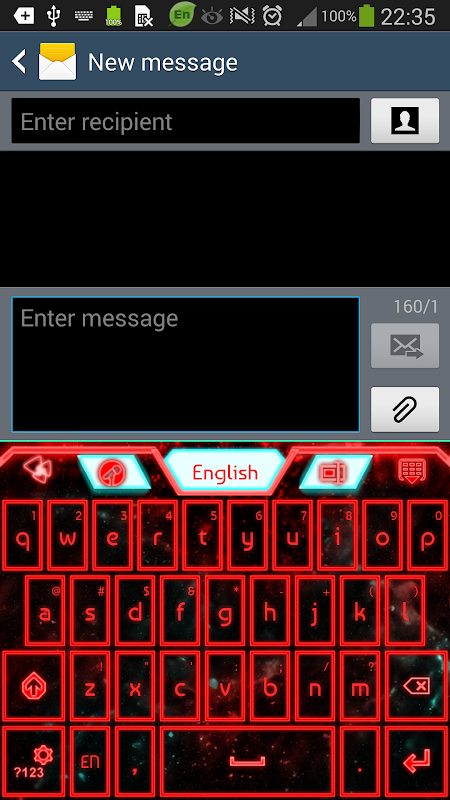 Red Glow is neon keyboard theme with red and green stars on a dark galaxy sky