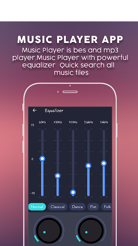 Design and layout is very nice Music Player with powerful equalizer, Quick search all music files, custom background skin, free to get this perfect audio player and media player.