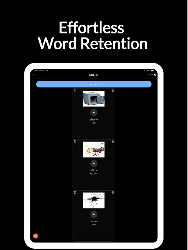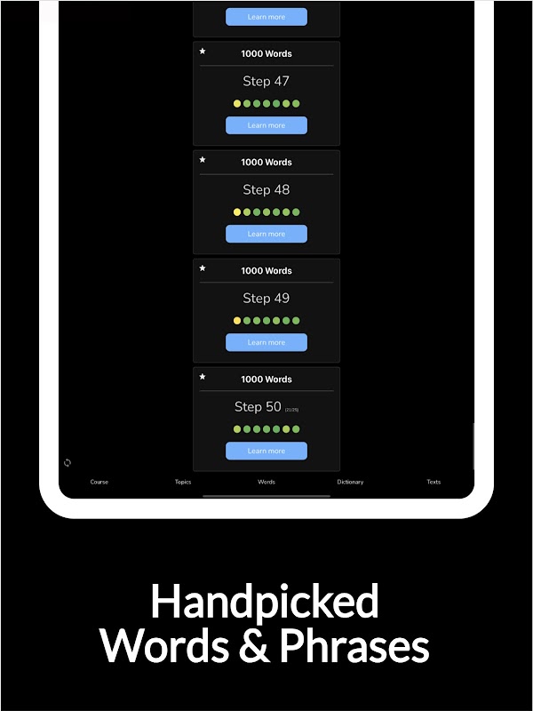 Start with curated word lists and essential phrases in each language. Our courses are organized into manageable lessons of 20 words each, helping you progress smoothly while keeping motivation high.