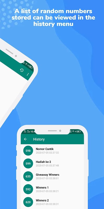 This feature will display random numbers that you saved previously, you can also delete them by long pressing on the item you want to delete.