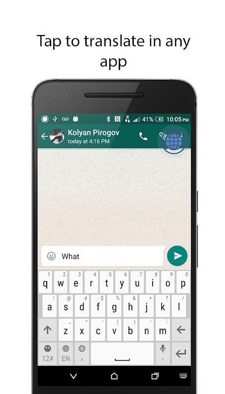 Provides the following options: tap to translate, copy translate ,widget translator , popup translation, vocabulary , pronunciation, real-life examples, phrasebook , SMS Translator and more.