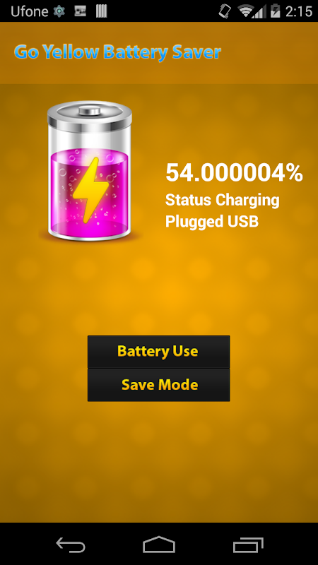 Go Yellow Battery saver is working as a second battery like because the charge our mobile fast and safely and also tell you that mobile is charging from usb port or from charger it is a best function of Go yellow battery saver application and half solutions for draining battery. It is very difficult to find free application like Go Yellow Battery saver android application, the battery saver application truly saves you battery life. Most of application for battery saver measures battery are manual, like turning the brightness on your touch screen down, turning of 3G,4G data when you free from them, other battery savers application tried another methods. Some application are just a task manager applications that have just battery saver name that can actually use and draining battery life , that application never save the battery life.