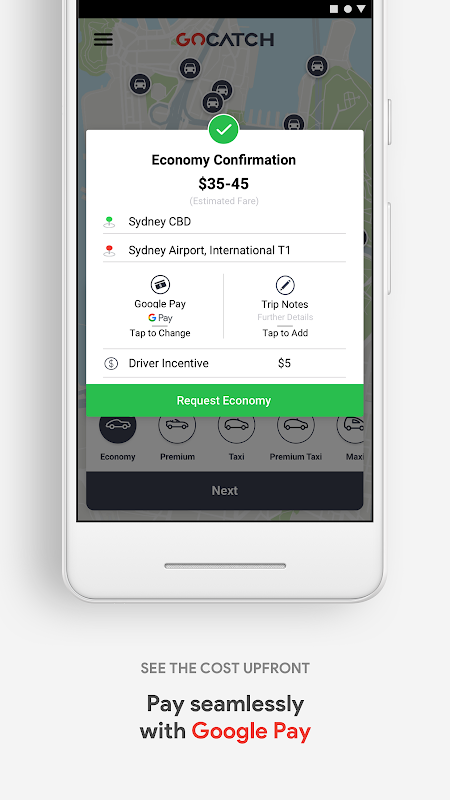 - Payment with GoCatch is easy. If you’re paying with Google Pay, PayPal or your saved credit/debit card in a GoCatch Economy, Premium, Taxi, Premium Taxi or Maxi, simply hop out at the end and it’ll be automatically paid for in-app. Taxi, Premium Taxi and Maxi also accept cash payments.