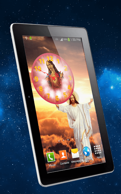 ✞ Be sure that God is among us each and every time you look at your new “God Clock Widget”! The Kingdom of God is opening its gates to you – have the feeling that the mighty Lord is always near you with these free analog clock widgets! Free download this Christian gadget and choose among ten Jesus background pictures for clock faces, many hands and digits to personalize your new “analogue clock”! Unlock the doors of the Kingdom of Heaven and find many angels resting on fluffy white clouds in the blue sky - on your phone or tablet! Try all the God wallpapers for clock faces to find a perfect “Virgin Mary” image, or choose your favorite “Jesus pictures” and wake up to all the religious scenes from the Bible! Keep your faith and remember that Jesus Christ is always by your side with this “God clock”! “God bless”!