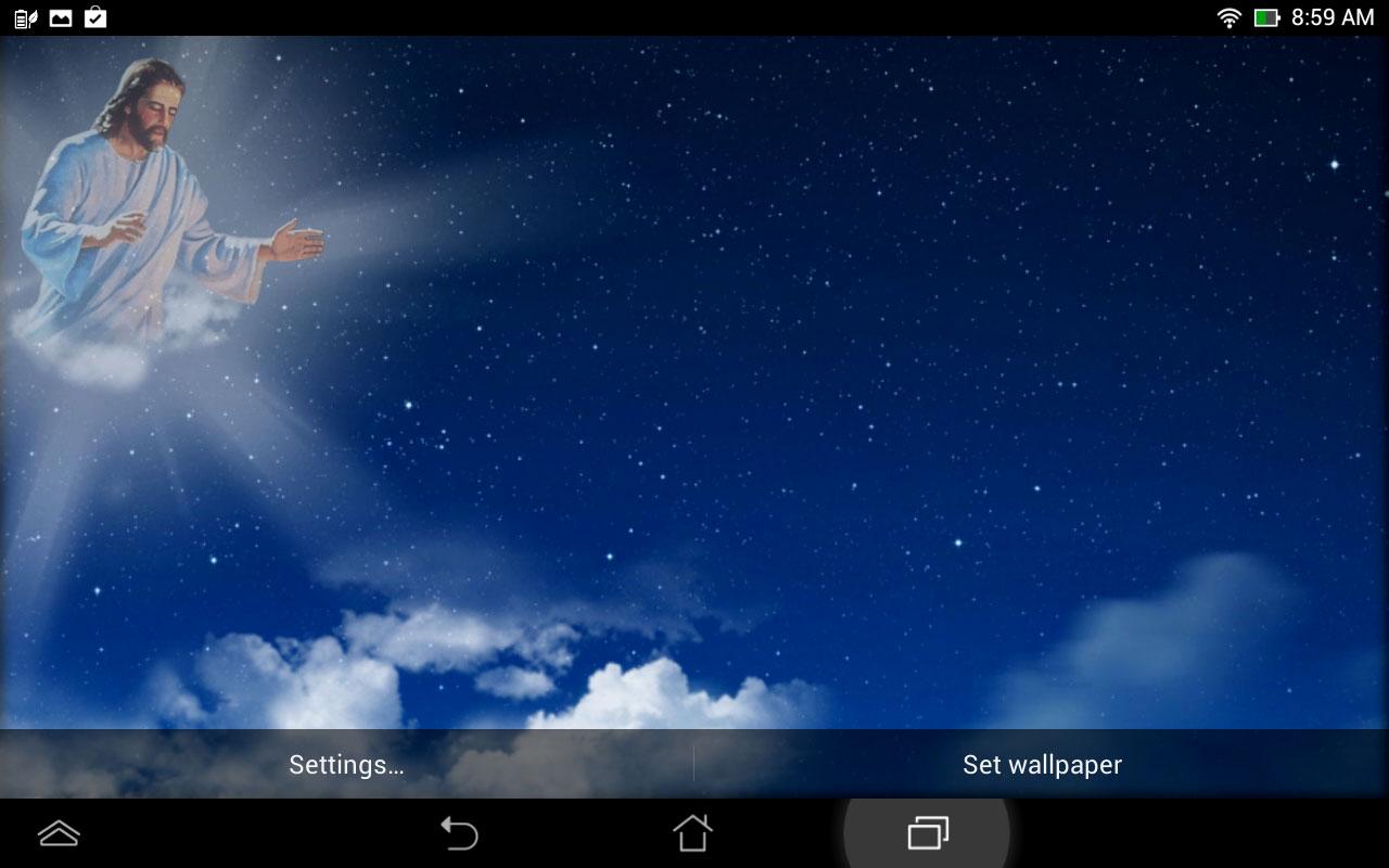Set God Live Wallpapers with sound to make your phones beautiful. Choose live wallpapers with different images of Heaven, fluffy clouds and starry sky in the midst of which the Son of God will appear. Keep your faith and remember that Jesus Christ is always by your side to guide and look after you with an amazing God Wallpaper HD.