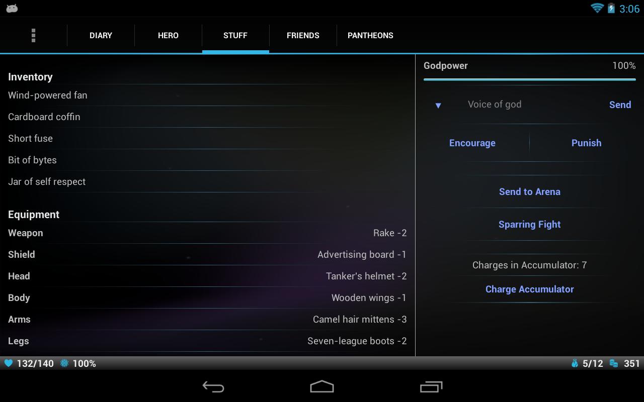 Tired of the games where you have to play 24x7x365 just not to feel like a loser? Godville is the answer! In this game you are god, and all you need to do is to create your own hero so he will do all these boring things you had to do in the other games. He will fight monsters, collect loot, earn gold, etc, leaving you to enjoy the only thing that matters in any game - lean back and have fun.
