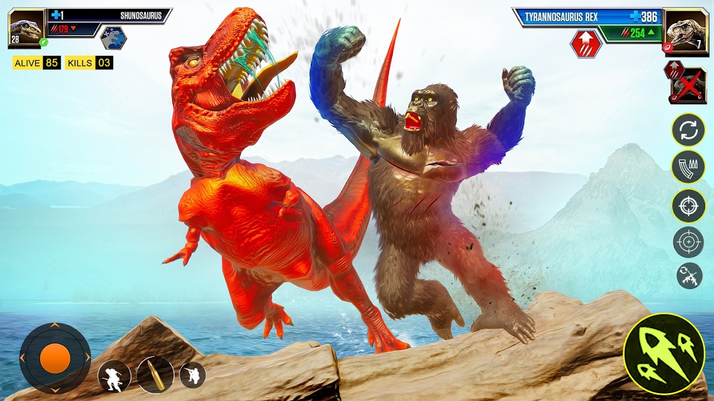 King kong games: Angry Gorilla City Rampage brings adventure journey in the monster gorilla games of city rescue and animal games where the dino games & super rage gorilla are playing in the style of rampage game. The gorilla glider in the rampage city is to eliminate the animals by unlocking all dangerous & wild dinosaurs to become powerful to fight by dinosaurs and gorillas. Unlike all other dinosaur attack vs Godzilla games you just need to save yourself & attack all the city cars in the angry gorilla city rampage game& so prove yourself in the free gorilla fight games. Play these monster gorilla games in this epic Jurrasic world as a dino and gorilla in dinosaur and gorilla glider to help out city rescue in the animal fighting games of city rescue and dino rampage games. Perform in all the city rampage game and in dinosaur evolution game where dinosaur and gorilla strike is on its peak and kill the monster rampage city with the help of chimpanzee running of animal attack games in the Jurassic world. Special task forces will attack you with bullets and launchers, dodge and counter their attacks by destroying them on the spot of the dinosaur fighting game. Mega dinosaur attack and gorilla rampage came from Jurrasic world games and trying to overtake the big world of gorilla rampage attack: angry gorilla games by their big foot in dinosaur attack and dinosaur games.