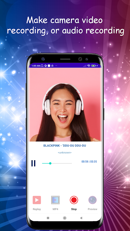 - Make music video by 4 different recording methods: sing with YouTube music and make camera recording or audio recording, OR, sing with local device music and make video or audio recording. Camera recording will come with playing music at the same time.