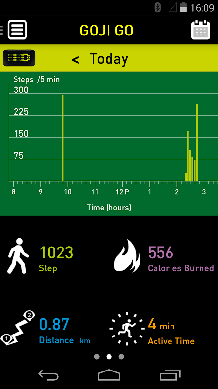 The App is used with the Goji Go Activity Tracker. Via Bluetooth 4.0, it connects with the activity tracker and upload user’s activity data to the phone.
