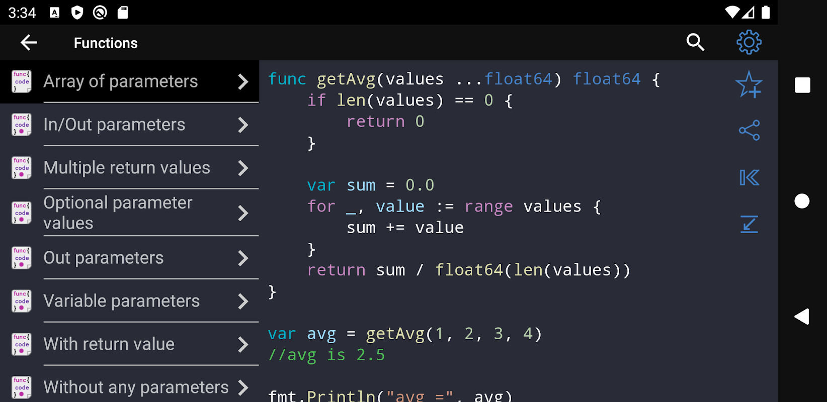 • All examples in the application are available offline. The application can be used when the Internet connection is not available.