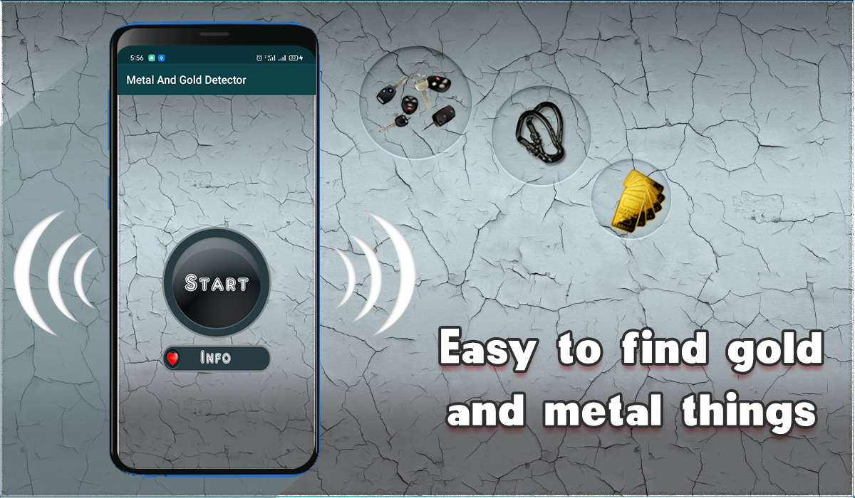 Metal Detector & free Gold Detector help to identify any metal object in surround, because all metals generate magnetic field which strength can be measured with this tool.