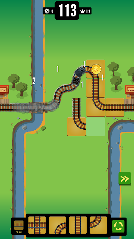 Try to solve the puzzles using all the railroad tracks to maximize your score, and reach the train station before the time runs out to get a bonus. You have two options in each stage: solve the puzzle as fast as you can to multiply your gold earnings or relax and play at your own pace since there is no time limit. Sharpen your wits to solve the challenges of each puzzle with the best brain training game. Connect the railroad tracks and save the trains!