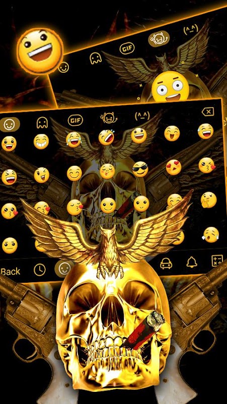☠️ Golden Hell Skull Keyboard theme has scary emojis backgrounds, Hell Skull app icons, gun fashion fonts.