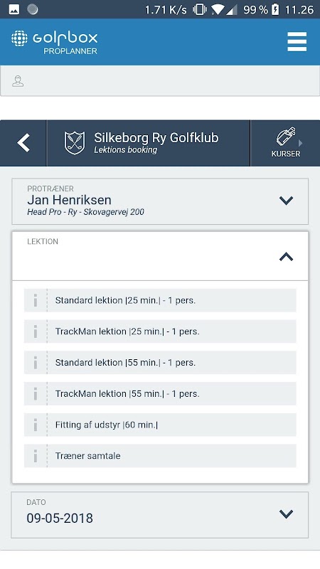 With this app, you can book your golf lessons easy and quick. You can choose between the lessons types and clinics your PGA professional have available.