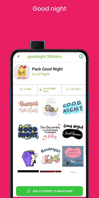 🤗Introducing Good Night Stickers for WhatsApp WASticker! Express your warmest wishes and create a serene atmosphere in your conversations. Discover a delightful collection of stickers featuring moon, stars, and soothing messages. Download now and send sweet dreams to your loved ones🤠