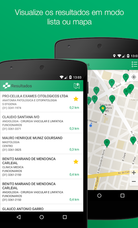 With a simple and fast interface, identifies doctors, clinics, laboratories, hospitals and other health facilities closer to the user, according to the contracted plan.