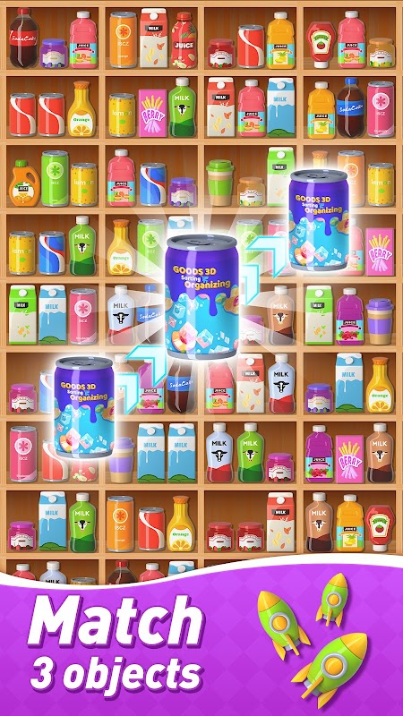 2. Sort and clear three identical products, and then the products behind the shelves will appear.