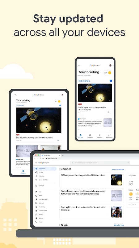 Do you prefer to access your news on your Laptop or Desktop? Pair the Google News mobile app with our Desktop website, news.google.com, so you can stay up to date and access the news no matter what device you’re on.