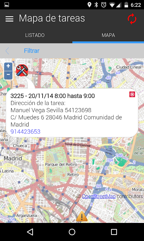 En la aplicación móvil, el trabajador puede ver la información de sus tareas pendientes, localizar en un mapa su ubicación, utilizar el GPS para acudir a sus destinos, reportar la realización de cada una de ellas, dar de alta incidencias, ponerse en contacto con otros empleados o subir ficheros y fotos.