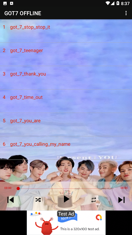Got7 Music KPOP Offline (Lyrics) Application contain the best 10 GOT7 Songs Offline , as you know GOT7 (갓세븐) is a 7-member Boy group under JYP Entertainment. They consist of: JB, Mark, Jackson, Jinyoung, Youngjae, BamBam and Yugyeom.