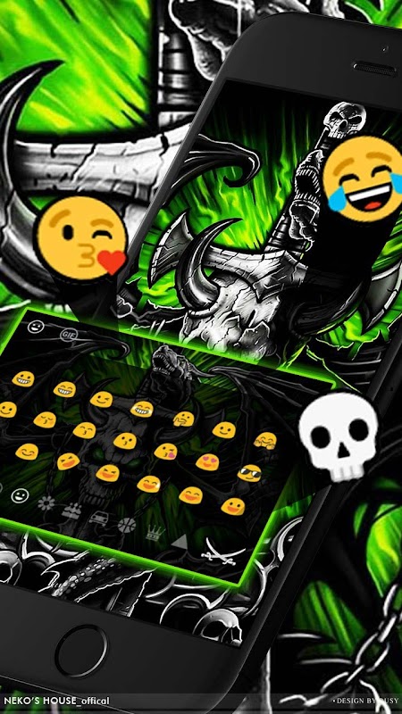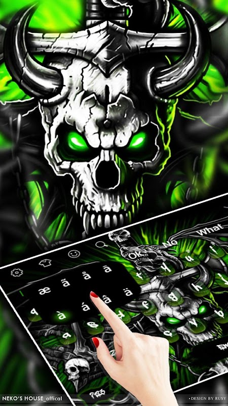 ·Gothic Metal Graffiti Skull Keyboard Theme give off a pair of a horn with devil style of background, holding up your cool memories of the gothic graffiti skull. green cool graffiti, surrounded by dark gothic graffiti skull. This skull theme of graffiti skull with green neon&cool metal.it also adds a classic colorful metal gothic style of dark.