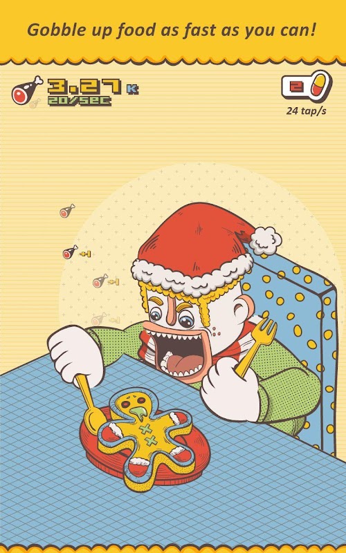 Simply tap anywhere to feed Leon. The aim of the game is to pile on weight as quickly as possible as you unlock new and exciting (and sometimes bizarre) items off the menu. You can also upgrade your utensils and even upgrade Leon's stomach to increase the amount of food you can shovel into it. From time to time, objectives pop up to help you gain even more weight!