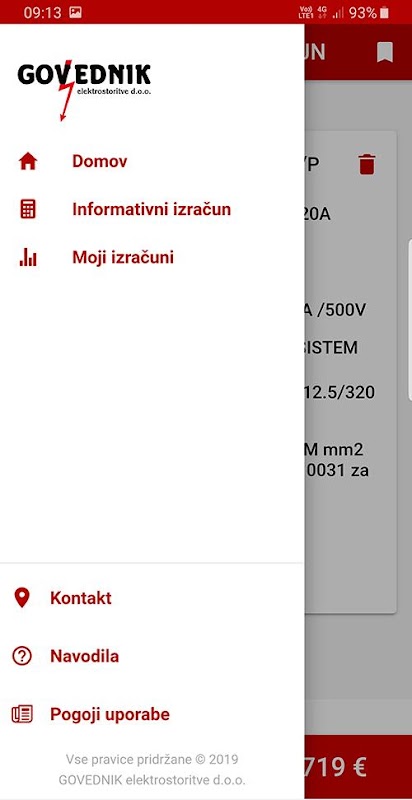 Mobilna aplikacija omogoča informativni izračun kabelskega priključka omare. Aplikacija uporabnika vodi po celotnem izboru možnosti. Uporabnik lahko na informativni izračun doda nove, dodatne elemente, prav tako mu aplikacija omogoča pošiljanje povpraševanja glede na izdelano informativno ponudbo. Po želji, lahko uporabnik s klikom na gumb v zgornjem desnem kotu informativni izračun tudi shrani.