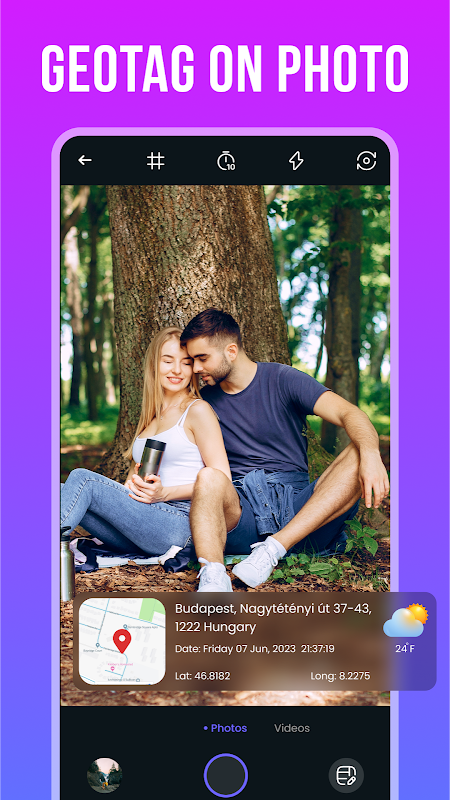 Shareable Photos: Effortlessly share your geo-tagged photos with friends and family on social media.