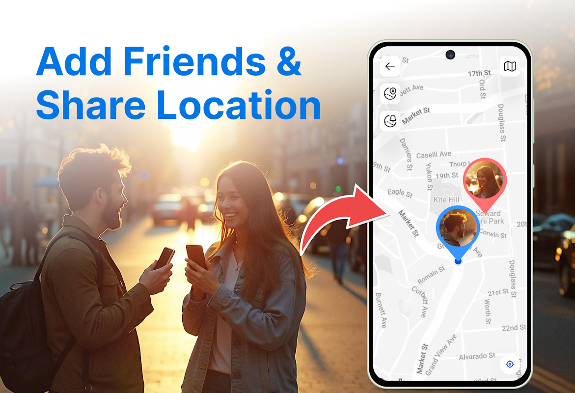 Share your live location or see approved contacts on the map after mutual approval. You can pause sharing at any time. Everything is secure, private, and under your control.