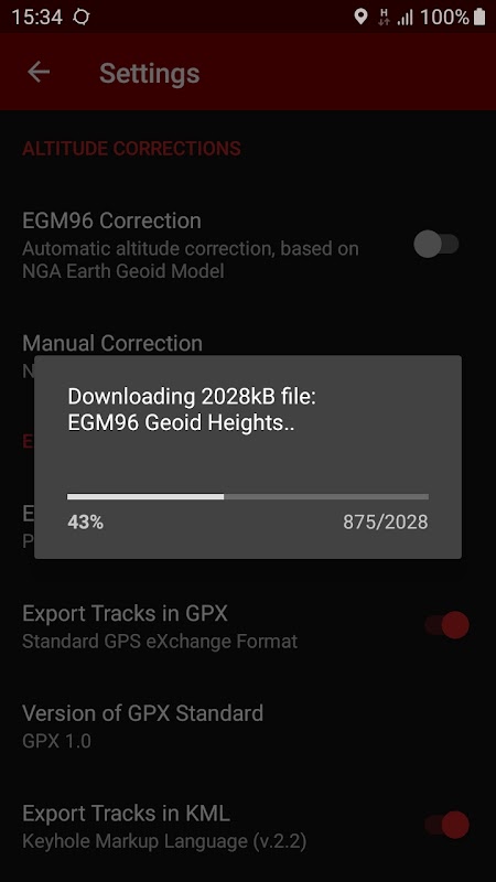 - Automatic Altitude Correction, based on NGA EGM96 Earth Geoid Model (you can enable it on Settings). If your device doesn't have Internet access, you can enable this feature manually by following this simple tutorial: https://www.basicairdata.eu/projects/android/android-gps-logger/application-note-gpslogger/manual-setup-of-the-egm-altitude-correction-for-basic-air-data-gps-logger/