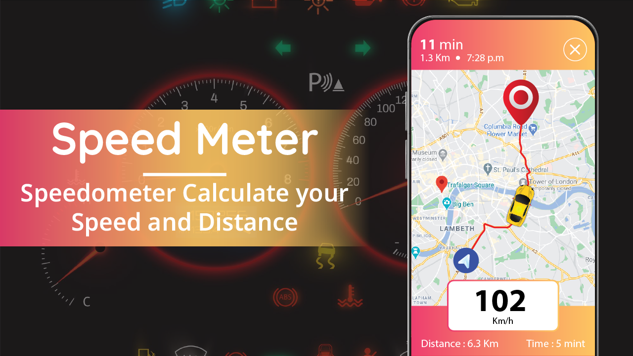 Speedometer will give you with real time live speed of your vehicle during your journey so you can get control over your speed