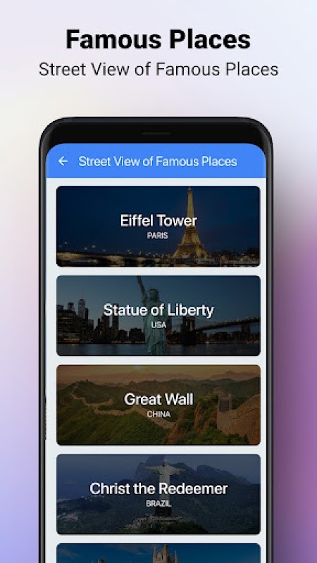 GPS Maps and Navigation- Route, Directions, Traffic, Transit and Street View shows you 3D Panorama 360 degree street view of famous places around the world.